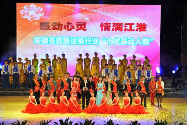 會(huì)議期間舉辦了"十一五"期間全省道路運(yùn)輸行業(yè)"十大感動(dòng)人物"頒獎(jiǎng)晚會(huì),運(yùn)用視頻短片等形式對(duì)獲獎(jiǎng)?wù)叩南冗M(jìn)事跡進(jìn)行了宣揚(yáng),F(xiàn)場(chǎng)群眾觀看著大屏幕上獲獎(jiǎng)?wù)叩母腥耸论E,聆聽著獲獎(jiǎng)?wù)叩臉銓?shí)話語,一次次用雷鳴般的掌聲表達(dá)了敬佩和感動(dòng)之情。他們的典型事跡,集中展示了道路運(yùn)輸人的風(fēng)采,唱響了時(shí)代的主旋律,在群眾中引起了強(qiáng)烈的共鳴。省交通運(yùn)輸廳梅勁廳長、丁慶領(lǐng)副廳長及滁州市相關(guān)領(lǐng)導(dǎo)為"十大感動(dòng)人物"頒發(fā)了獎(jiǎng)杯。
