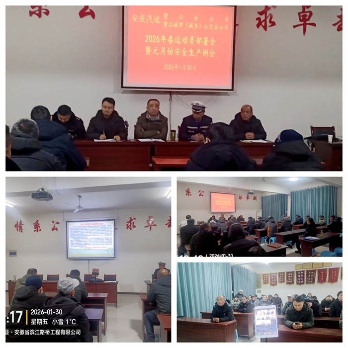 為保障春運(yùn)期間道路運(yùn)輸安全,1月30日晚,望江城市(城鄉(xiāng))公交分公司召開2026年春運(yùn)動員部署會暨元月份安全生產(chǎn)例會。望江縣道路運(yùn)輸管理服務(wù)中心、縣交警大隊蒞臨指導(dǎo)會議?紤]到鄉(xiāng)鎮(zhèn)駐點駕駛員的實際,會議創(chuàng)新采用微信視頻群聊方式,確保了全司60余名駕駛?cè)、安全員等“面對面”參會,實現(xiàn)培訓(xùn)全面覆蓋。