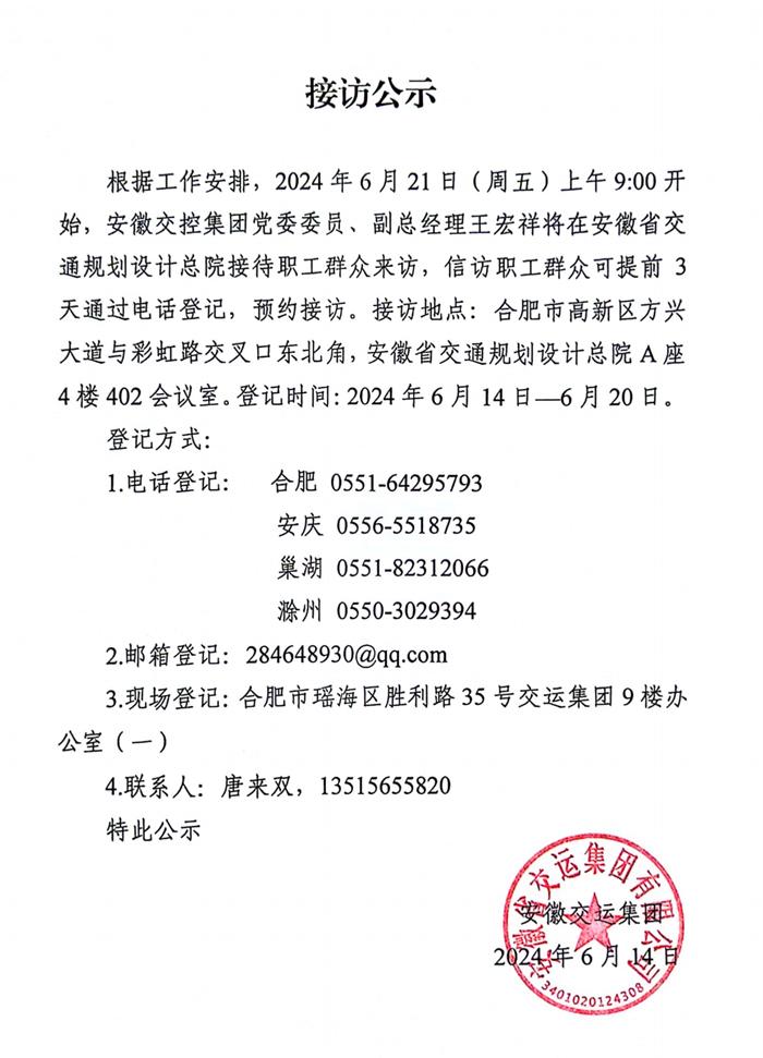 交控集團(tuán)領(lǐng)導(dǎo)接訪公示